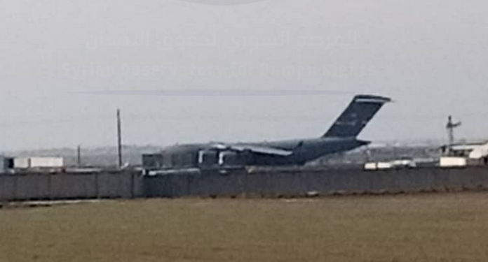 هبطت طائرة شحن أمريكية، صباح اليوم، في قاعدة “خراب الجير” بريف رميلان شمال شرق الحسكة حاملة تعزيزات عسكرية ولوجستية.