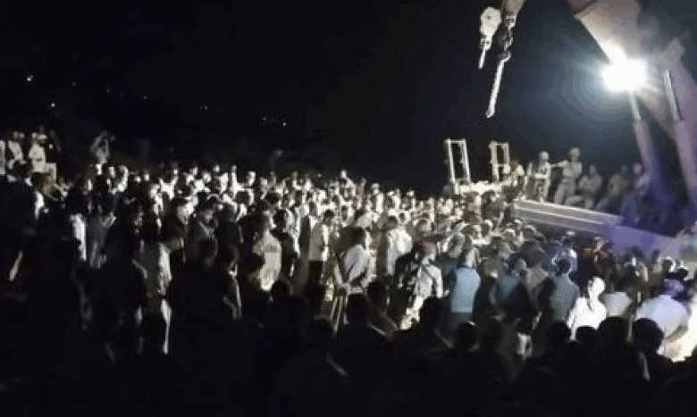 الأهالي يحاولون إنقاذه بوسائل بدائية وسط غياب لفرق ومعدّات الإنقاذ الحديثة، ما يفاقم المأساة.