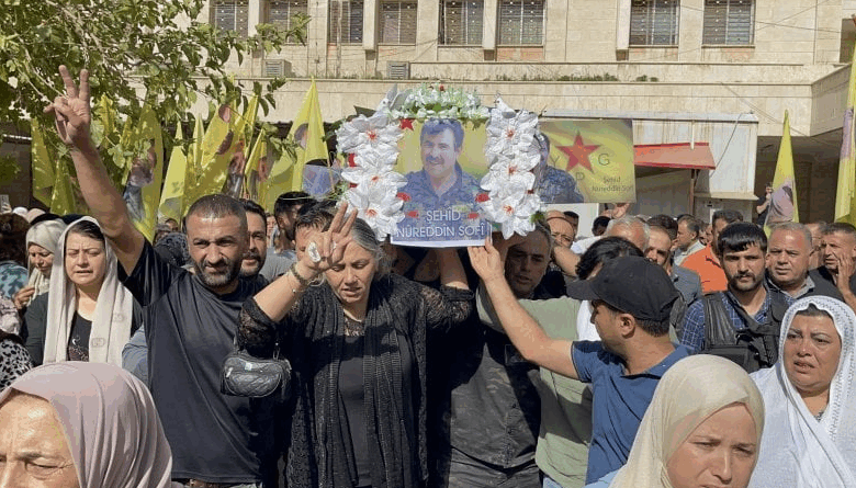 ومنذ صباح اليوم، توجه الآلاف من أبناء مقاطعة الجزيرة بكل مكوناتها وعشائرها وأطيافها إلى مشفى ديرك الوطني، للمشاركة في نقل جثمان الشهيد نور الدين صوفي إلى مدينة قامشلو.