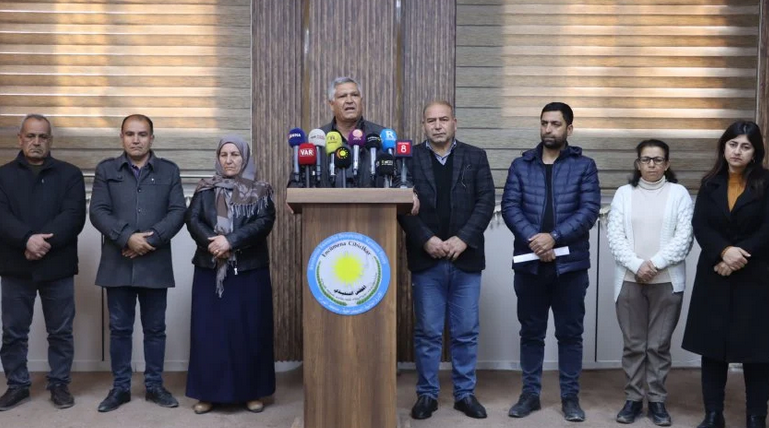 أدلت هيئة الشؤون الاجتماعية والكادحين بالتنسيق مع مكتب المنظمات في مقاطعة الفرات، اليوم، ببيان خلال مؤتمر صحفي، عُقد أمام مبنى الإدارة الذاتية في مدينة كوباني، بمشاركة وسائل الإعلام وأعضاء مؤسسات الإدارة الذاتية ومجلس مدينة كوباني.